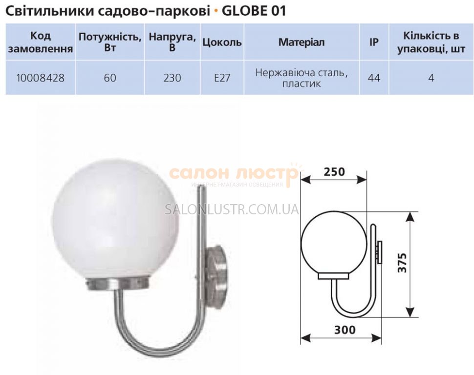 Высота: 37.5 см; ширина: 30 см; лампы: 1 х Е27 230V 60W;