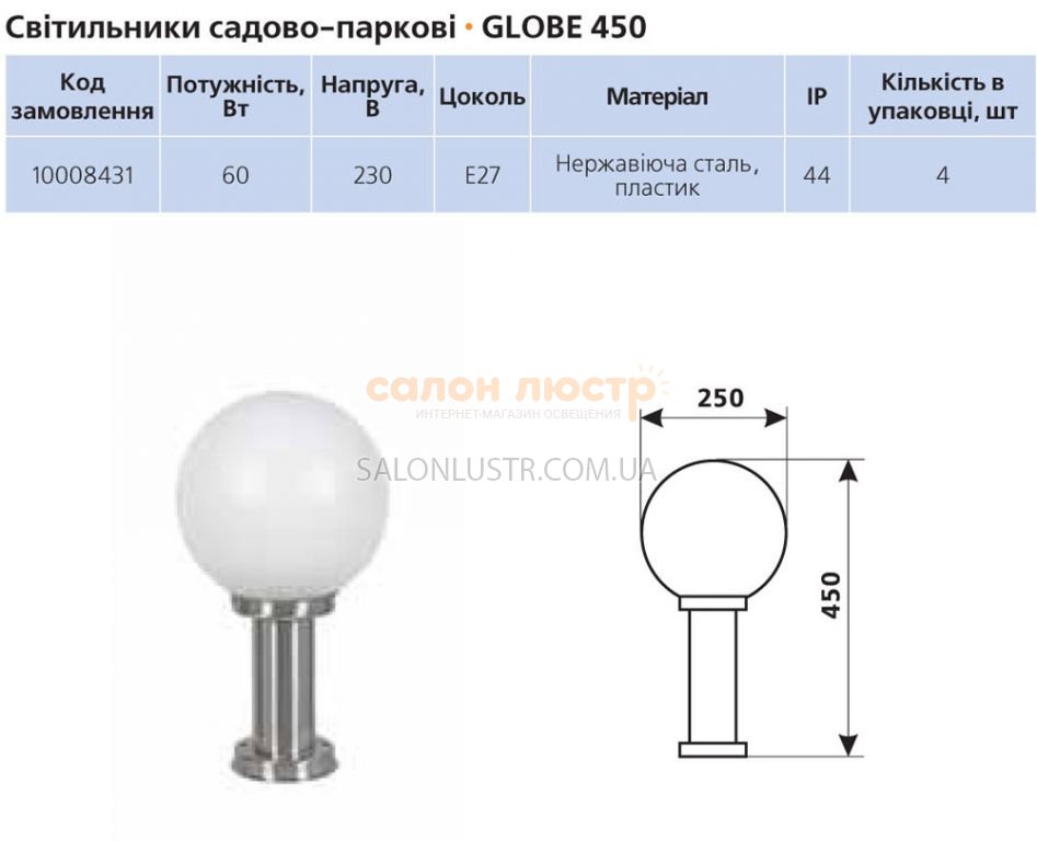 В светильнике садово-парковом Delux Globe 450 для наружного освещения возмоно использовать: лампу накаливания, энергосберегающую лампу, LED лампу.