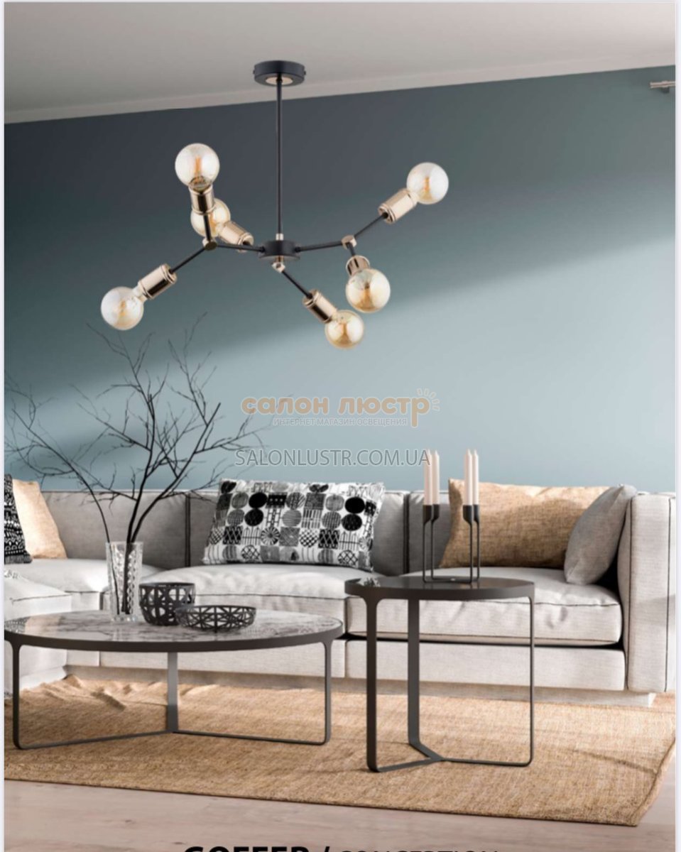 Высота: 38 см; ширина: 48х75 см; лампы: 6 х Е-27 х 60 Вт.