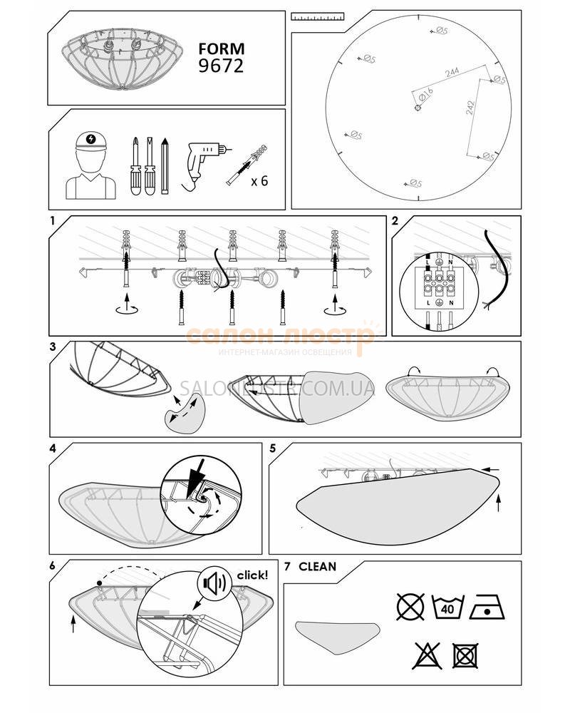Высота: 30 см; ширина: 18 см; лампы: 1 х Е-14 х 25 Вт. - NOWODVORSKIВысота: 26 см; диаметр: 80 см; лампы: 4 х Е27 х 25Вт LED.