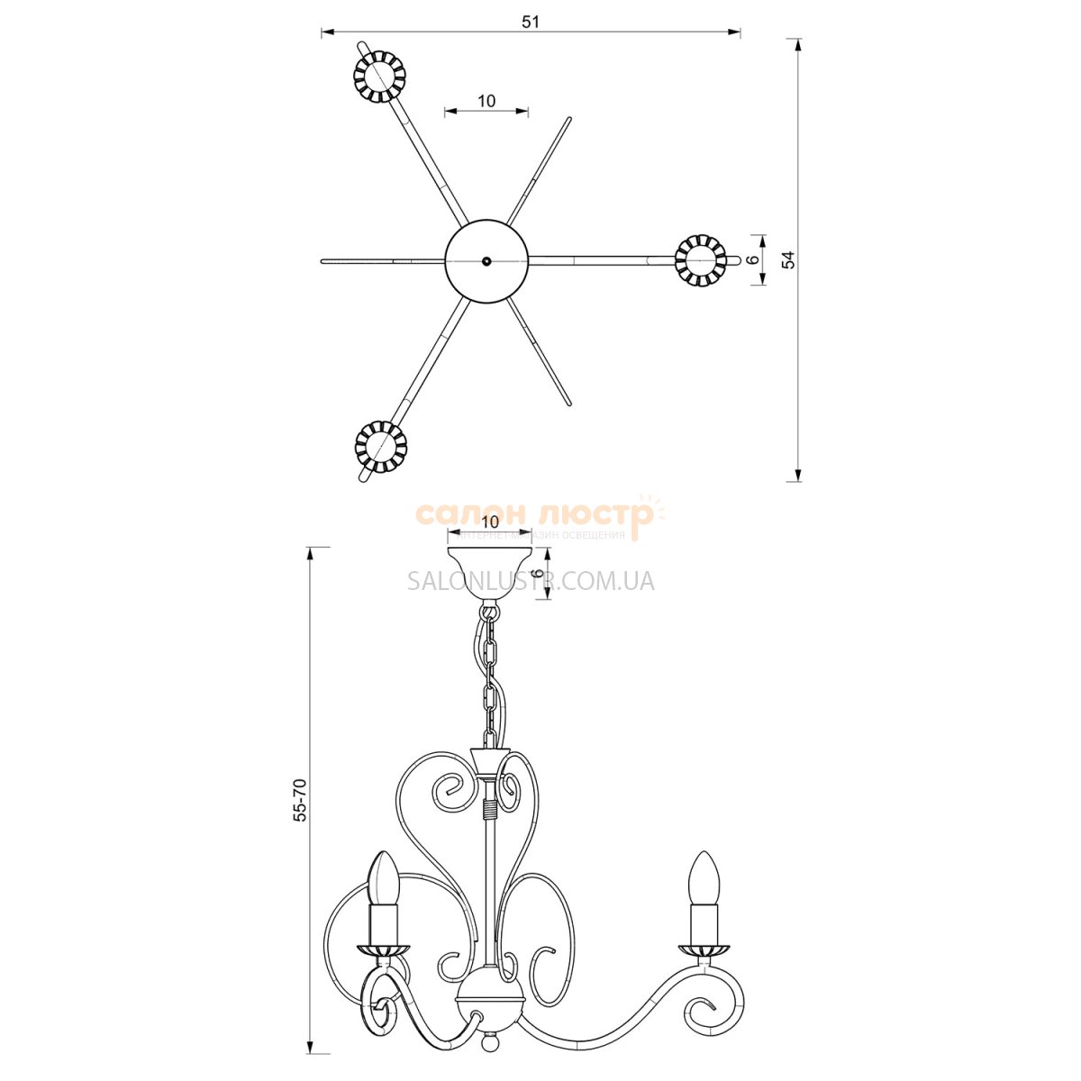 Высота: 55-70 см; ширина: 62 см ; лампа: 5 х Е-14 х 60 Вт. - LUMINEX