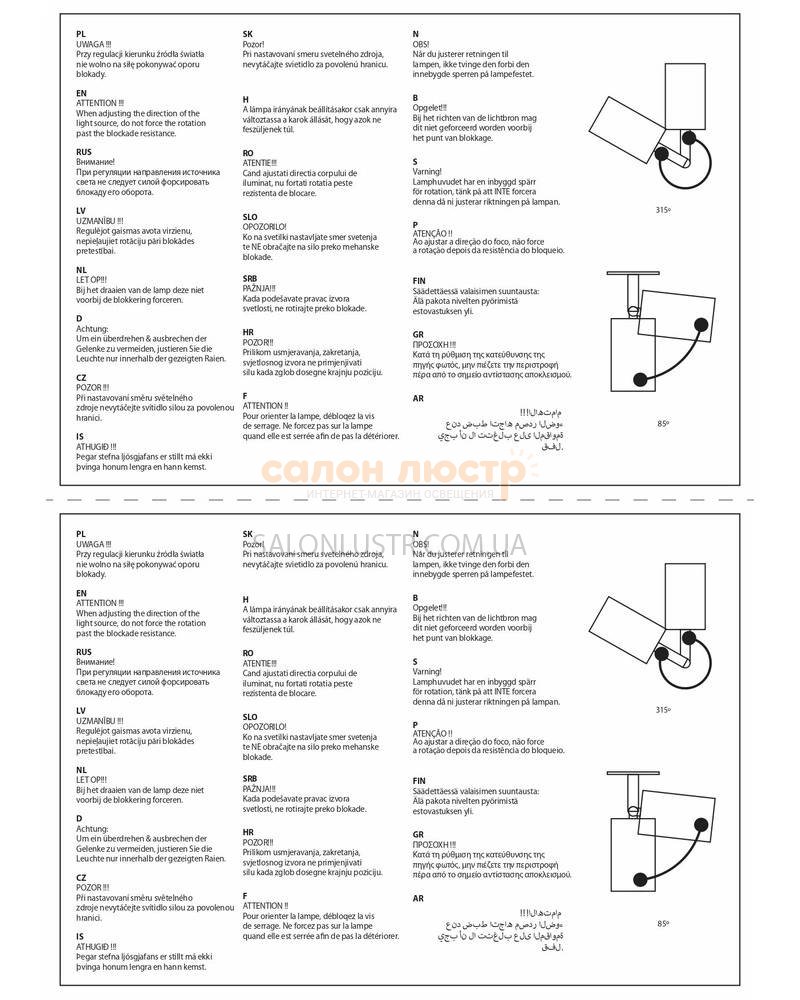 Высота: 8-16 см; ширина: 33-48 см; лампы: 3 x GU10 х 35 Вт. - NOWODVORSKI