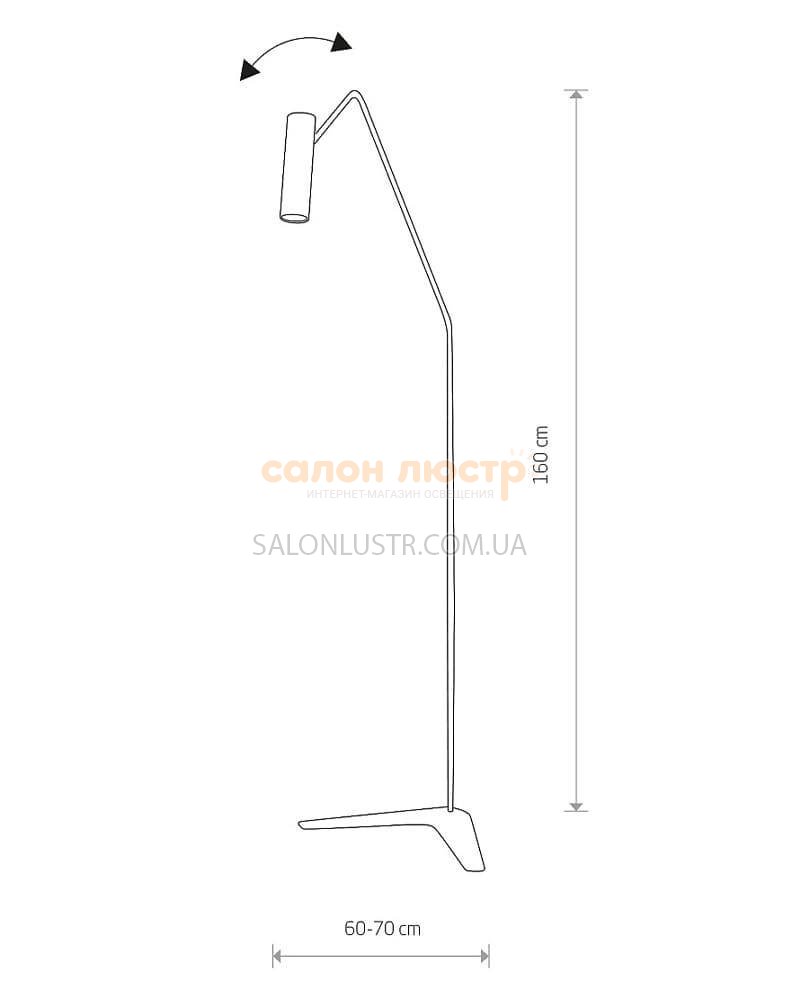Высота: 160 см; ширина: 50 см; лампы: 1 х GU10 х 35 Вт.