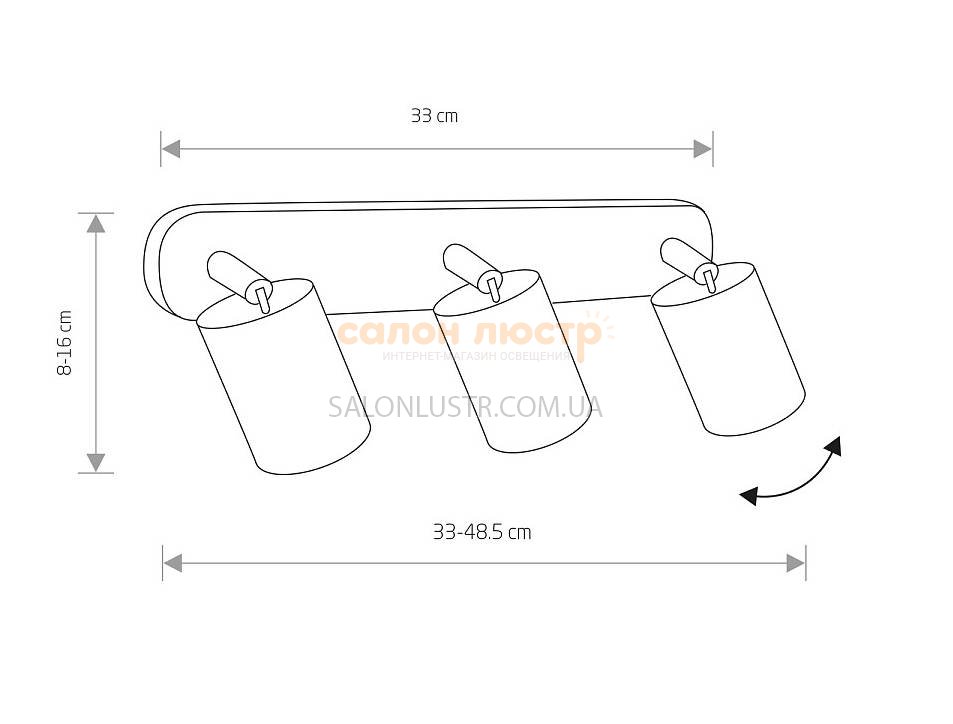 Высота: 16 см; ширина: 33-48 см; лампы: 3 x GU10 х 35 Вт.