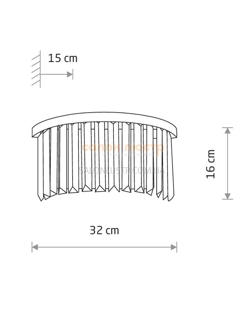 Высота: 16 см; ширина: 32 см; лампы: 2 х Е-14 х 60 Вт.