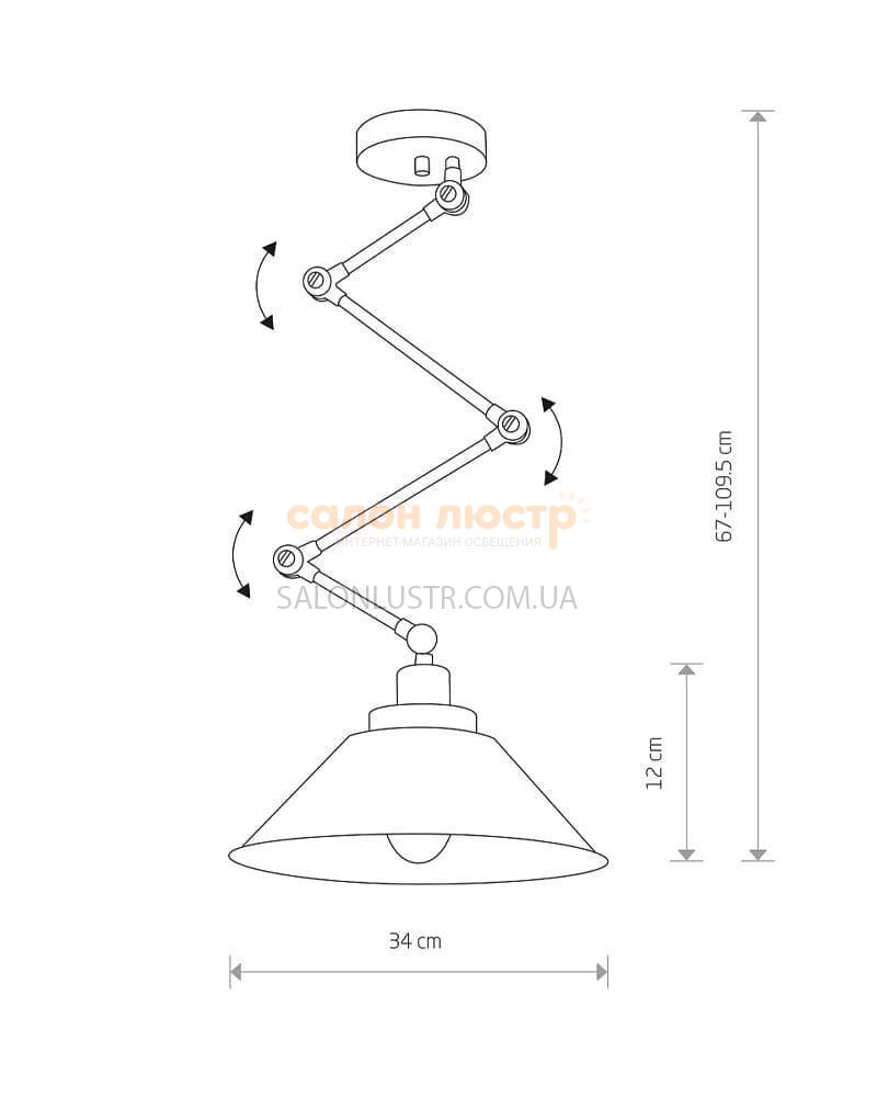 Высота: 67-109.5 см; ширина: 34 см; лампы: 1 х Е27 х 60 Вт;