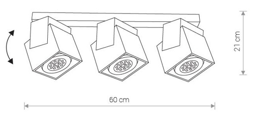Высота: 21 см; ширина: 60 см; лампа: 3 х GU10 х 35 Вт;