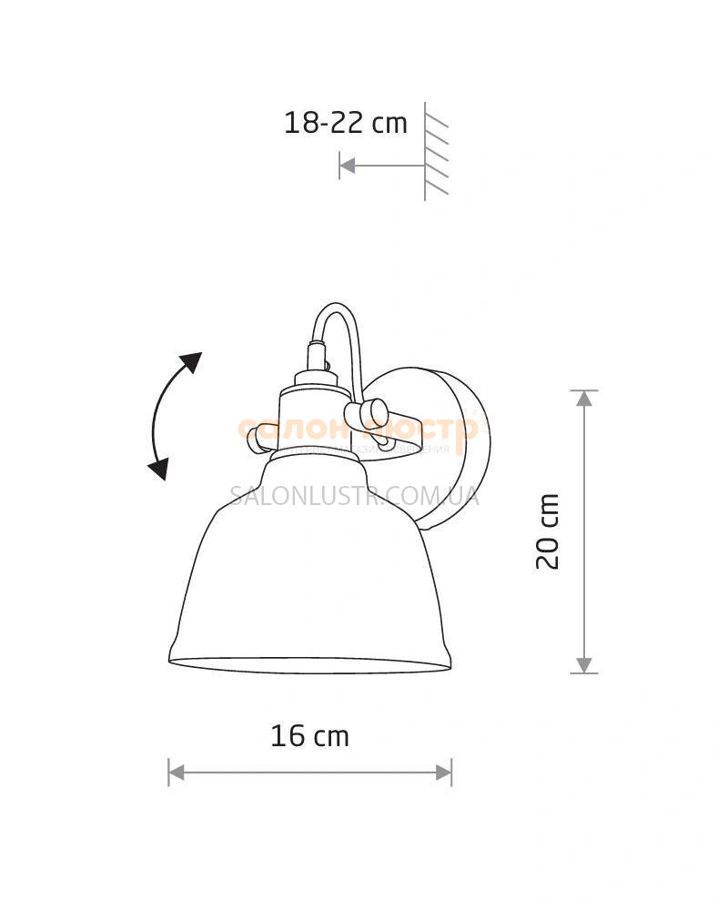 Высота: 20 см; ширина: 16 см; лампы: 1 х E27 х 60 Вт.
