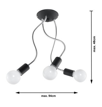 Высота: max 48 см; ширина: max 94 см; лампы: 3 х Е27 х 60 Вт.