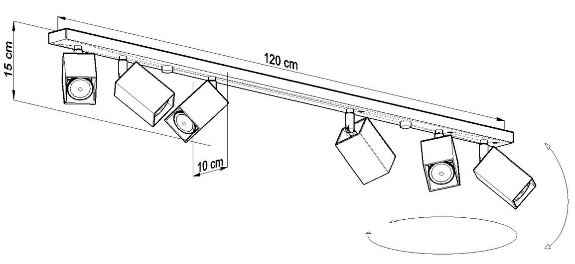 Высота: 15 см; ширина: 120 см; лампа: 6 х GU10 х 40 Вт;