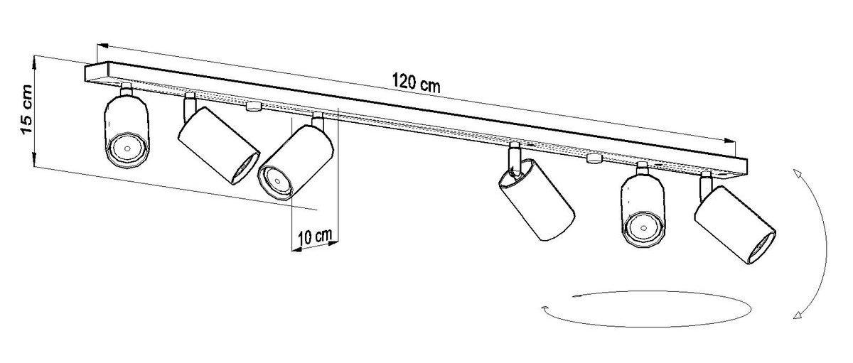 Высота: 15 см; ширина: 120 см; лампа: 6 х GU10 х 40 Вт;