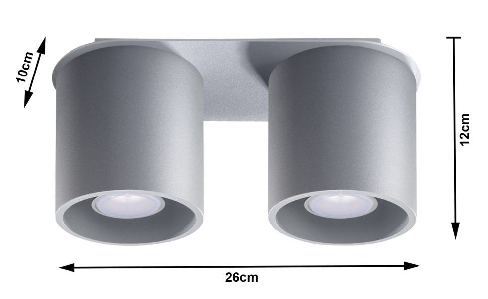 Высота: 12 см; ширина: 26 х 10 см; лампы: 2 х GU10 х 40 Вт;