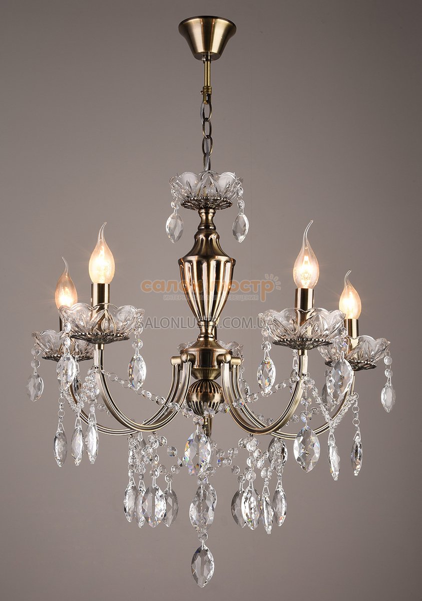 Высота: 80 см; ширина: 60 см; лампы: 5 х Е-14 х 60 Вт.