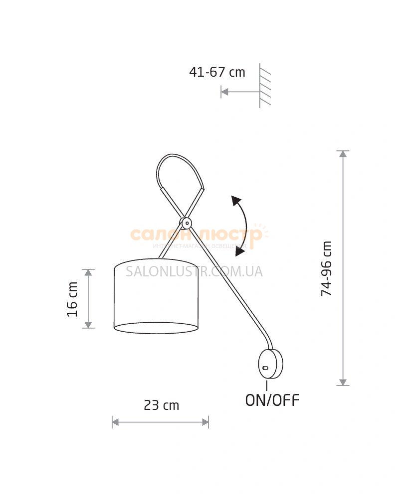 Ширина: 65 см; отступ: 60 см; лампы: 1 х E14 х 40 Вт.