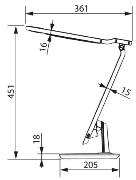 Высота: 45.1 см; основание: 36.1 х 20.5 см; лампа: LED х 10 Вт.