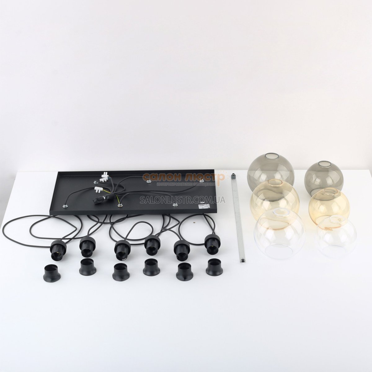 Высота: 85 см; ширина: 80 х 30 см; лампы: 6 х Е27 х 60 Вт;