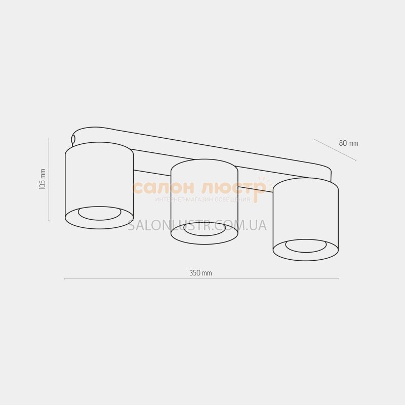 Высота: 10,5 см; длина: 35 см; лампы: 3 х GU10 х 10 Вт.