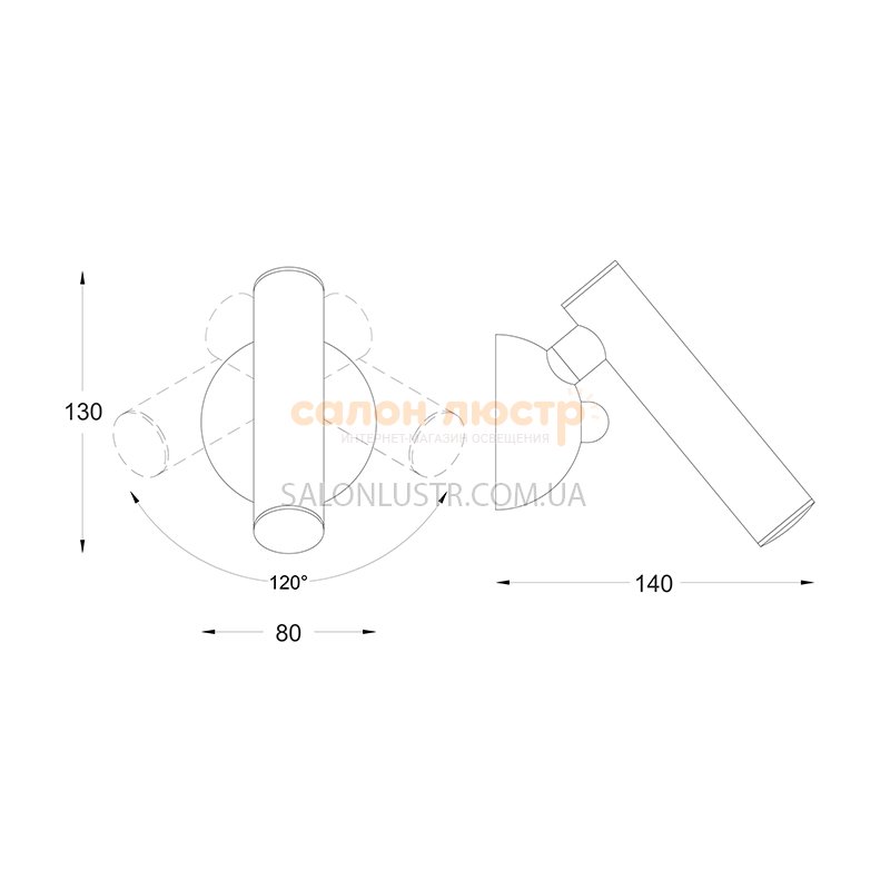 Высота: 13 см; ширина: 8 см; лампы: 1 х 5 Вт LED(450 Lm, 3000 K).