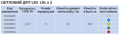 Световой провод LED LRLx2. Мощность 1LED- 0,07W; Количество источников света на 1 м - 36; Размер сечения провода - 13mm; Напряжение - 230V; Класс защиты - IP44; Тип применения - внешнее; Длина в бухте - 100m; Цвет:прозрачный. Шаг отреза светового провода LED LRL- 2 м. Комплектность: силовой кабель (230 V), вилки, заглушки и центральные соединители поставляются отдельно.