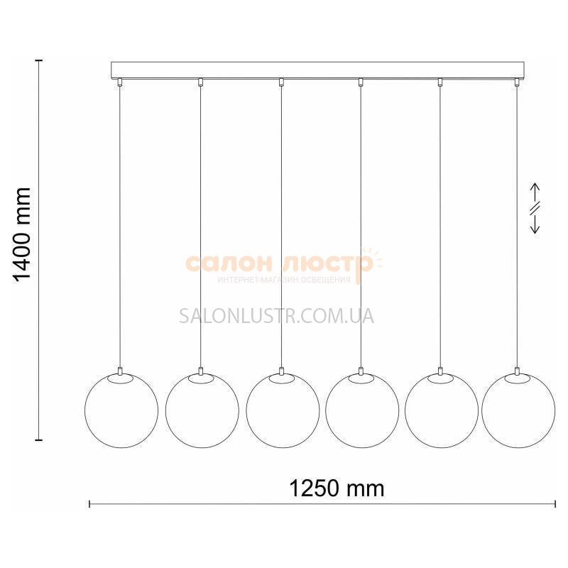 Высота: 50-140 см; ширина: 125 см; лампы: 6 х G9 х 6 Вт LED;