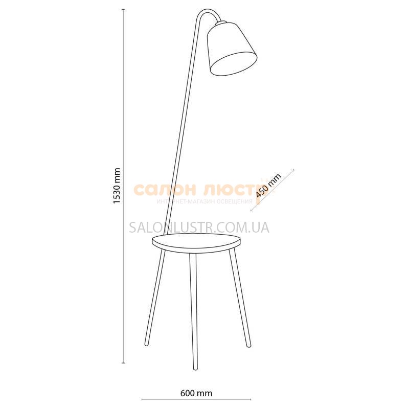 Высота: 153 см; ширина: 60х45 см; лампа: 1 х Е27 х 15 Вт LED.