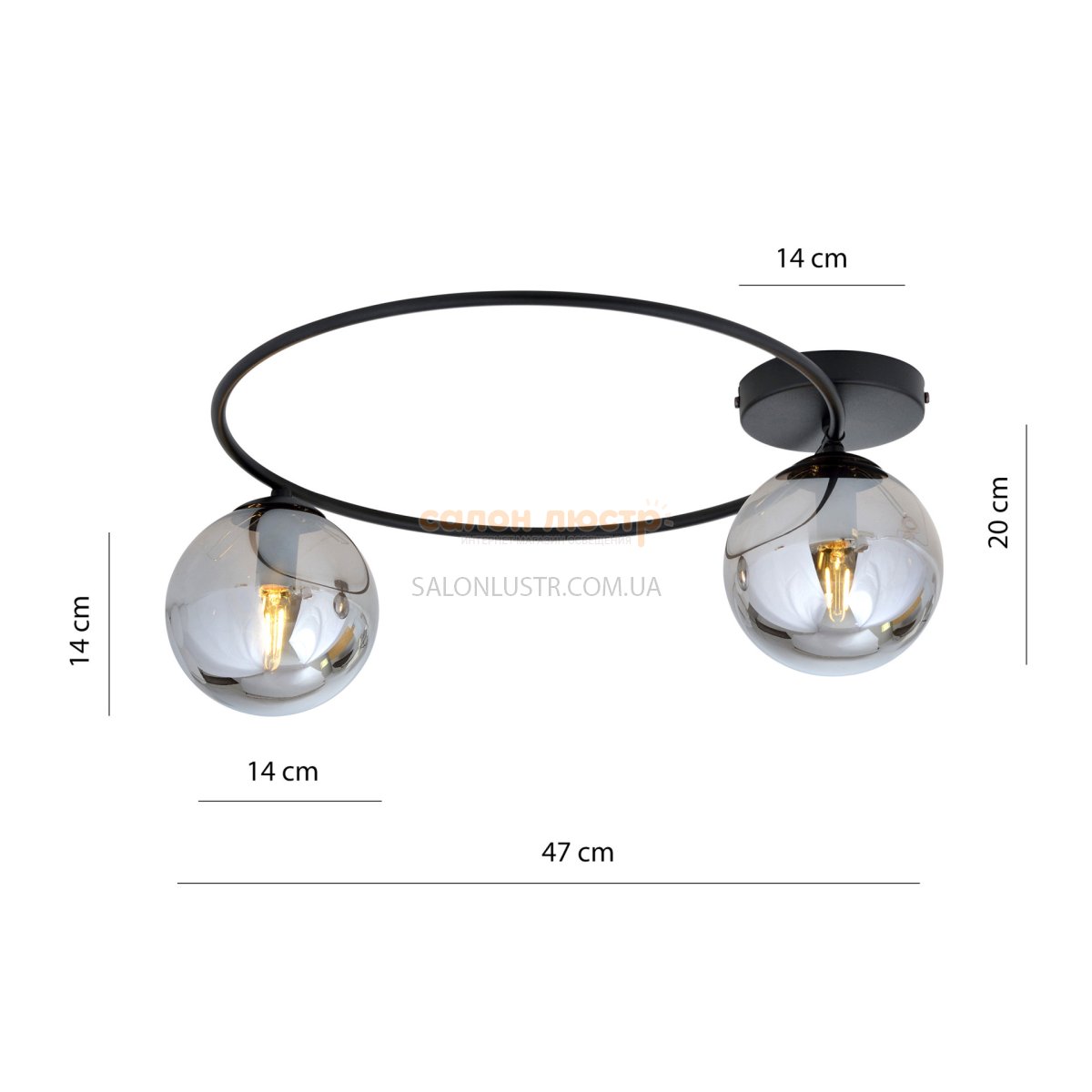 Высота: 20 см; ширина: 47 см; лампы: 2 х Е-14 х 60 Вт.