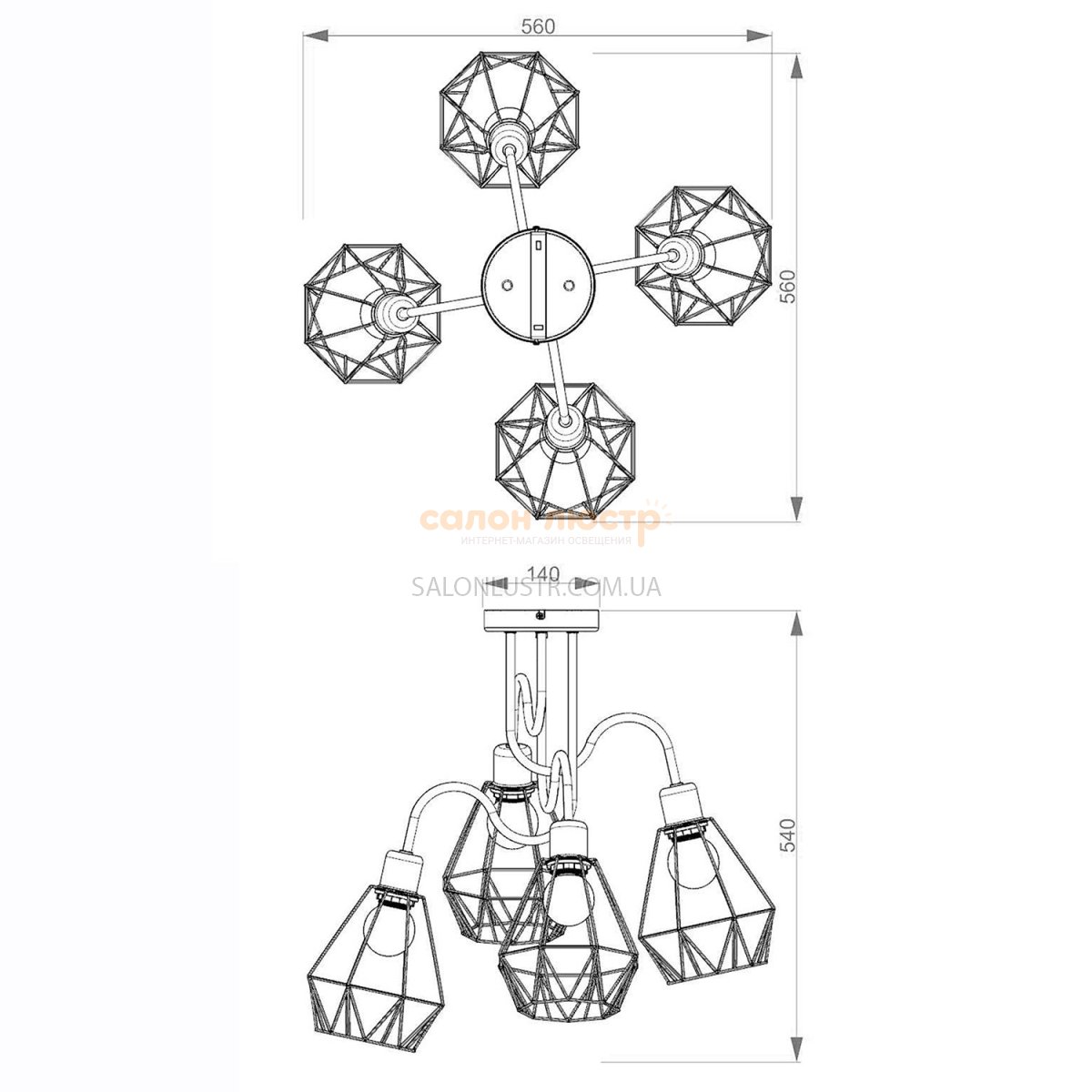 Высота: 50 см; ширина: 60 см; лампа: 4 х Е-27 х 60 Вт.