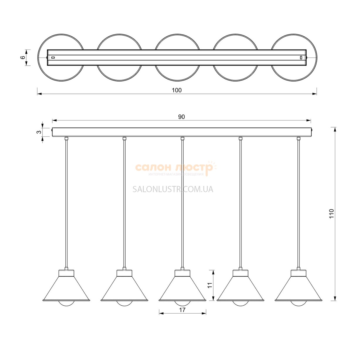 Высота: 50-110 см; ширина: 100х17 см; лампа: 5 х Е-27 х 60 Вт.