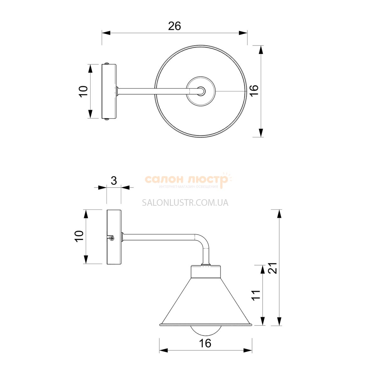 Высота: 20 см; ширина: 17 см; лампа: 1 х Е-27 х 60 Вт.