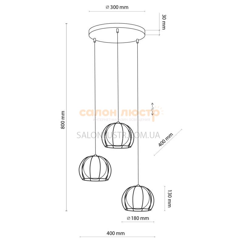 Высота: 50-110 см; ширина: 70 см; лампы: 3 х G9 х LED 6 Вт.