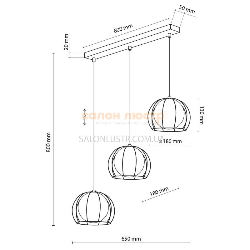 Высота: 50-110 см; ширина: 70 см; лампы: 3 х G9 х LED 6 Вт.