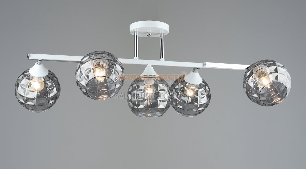 Высота: 28 см; длина: 77 см; лампы: 5 х Е27 х 60 Вт.