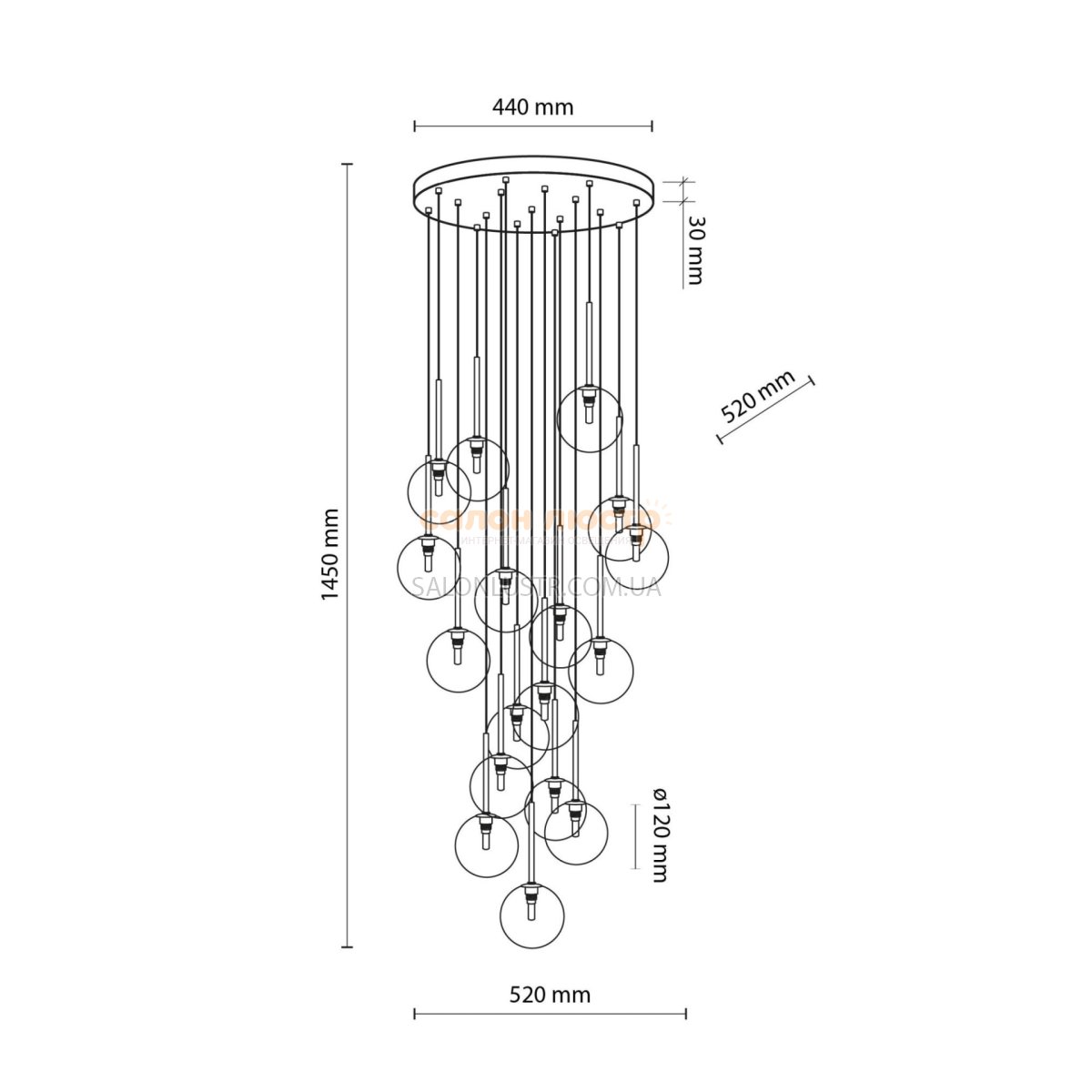 Высота: 50-145 см; ширина:52 см; лампы: 17 х G9 х 6 Вт LED;