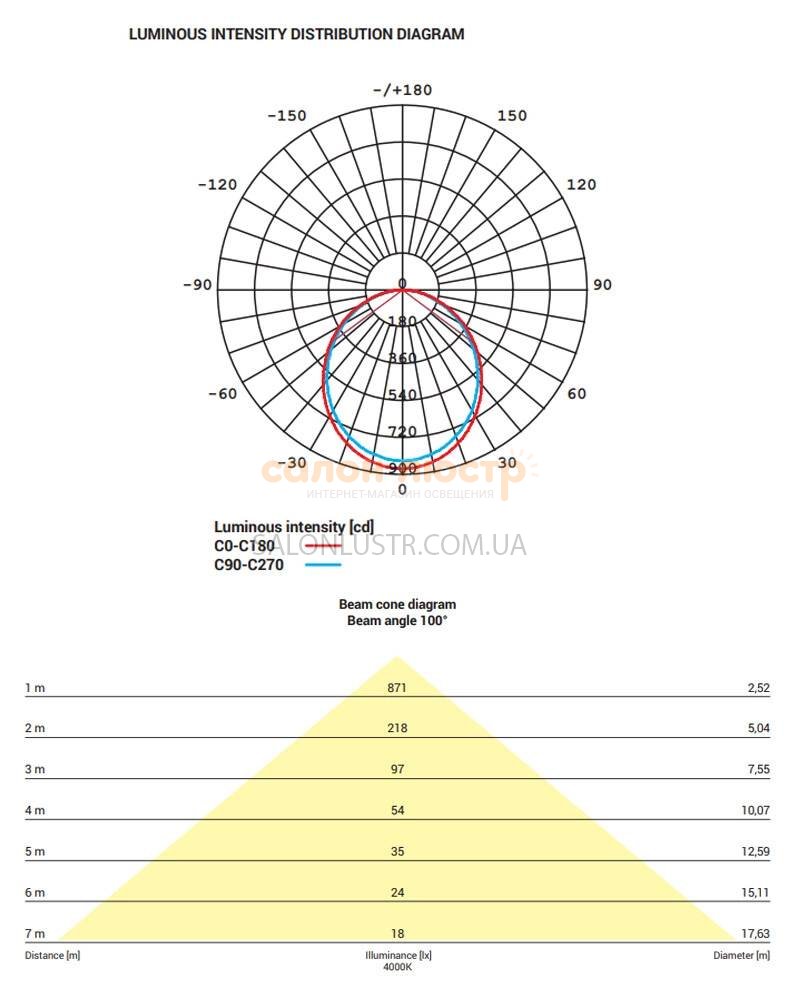 Высота: 3,5 см; диаметр: 12 см; лампы: LED х 8 Вт(4000K, 600Lm).