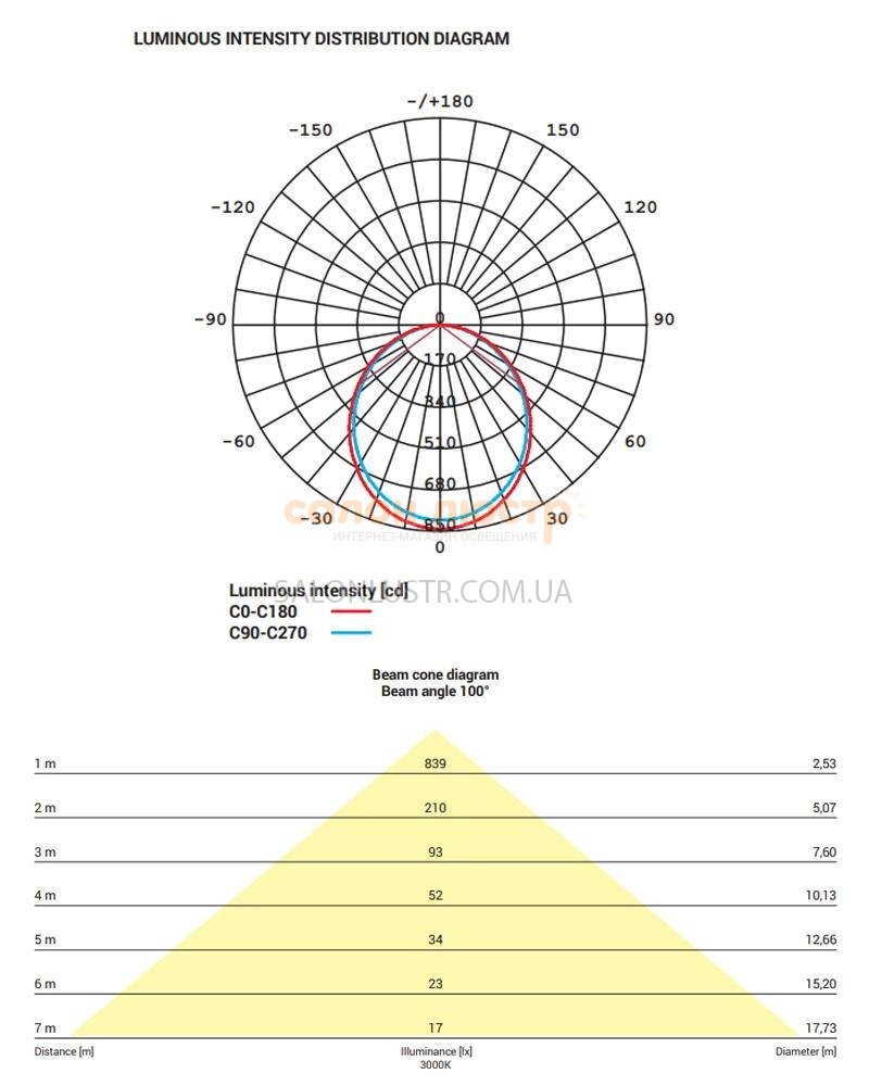 Высота: 3,5 см; диаметр: 17,5 см; лампы: LED х 16 Вт(4000K, 1450Lm).