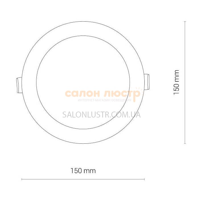 Высота: 3,5 см; диаметр: 12 см; лампы: LED х 8 Вт(3000K, 550Lm).