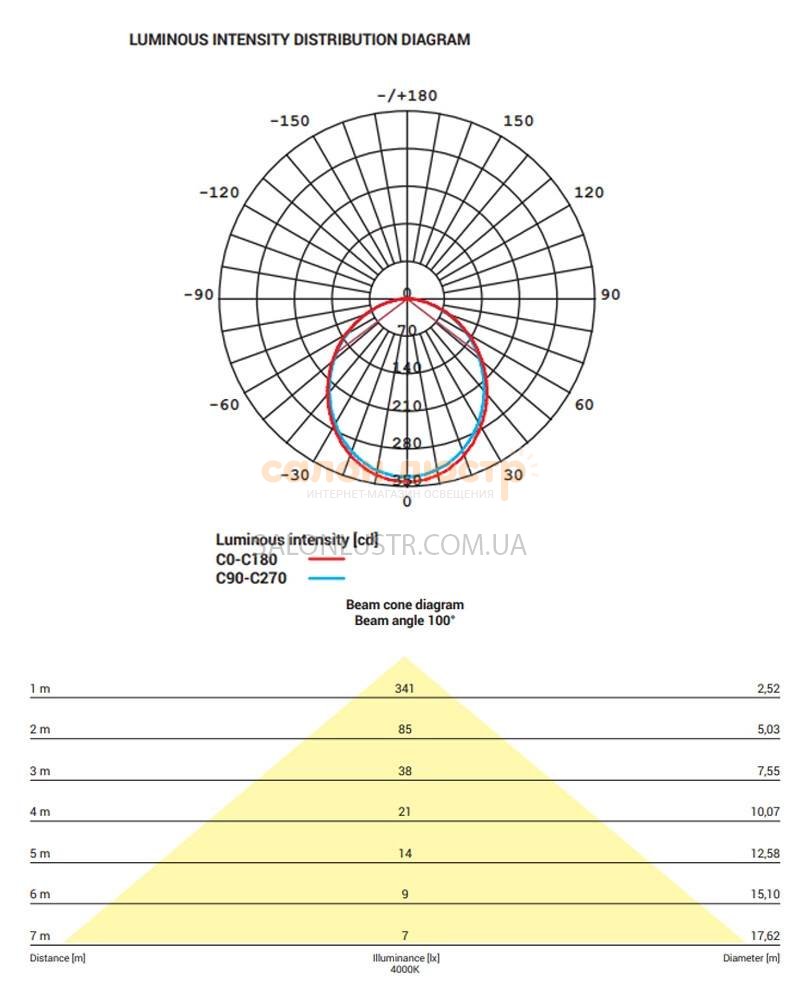 Высота: 3,5 см; диаметр: 17,5 см; лампы: LED х 16 Вт(4000K, 1450Lm).