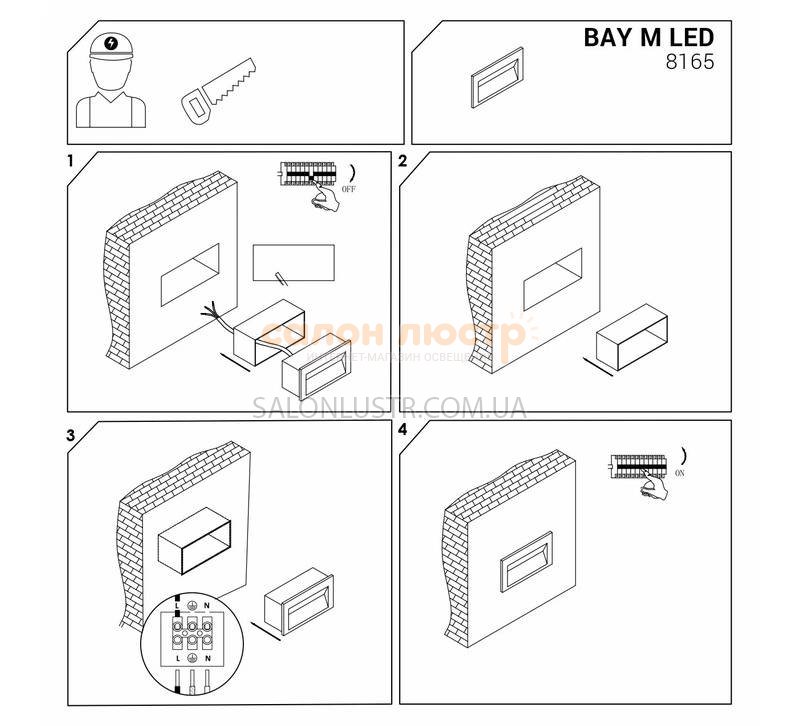 Высота: 5,5 см; ширина: 8,5 см; лампы: LED х 3 Вт(200Лм, 3000К).