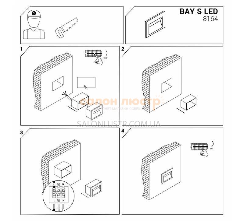 Высота: 5,5 см; ширина: 13,7 см; лампы: LED х 5 Вт(360Лм, 3000К).