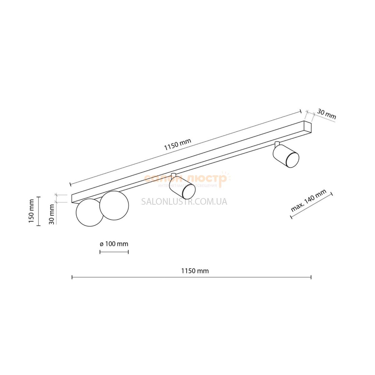 Высота: 14 см; длина: 115х15 см; лампа: 4 х GU10/G9 х 10 Вт LED.