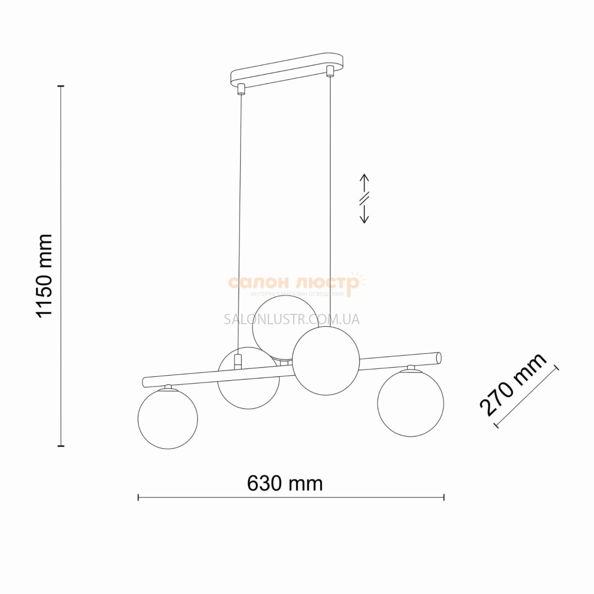 Высота: 50-115 см; ширина: 63х27 см; лампа: 5 х G9 х 6 Вт LED.