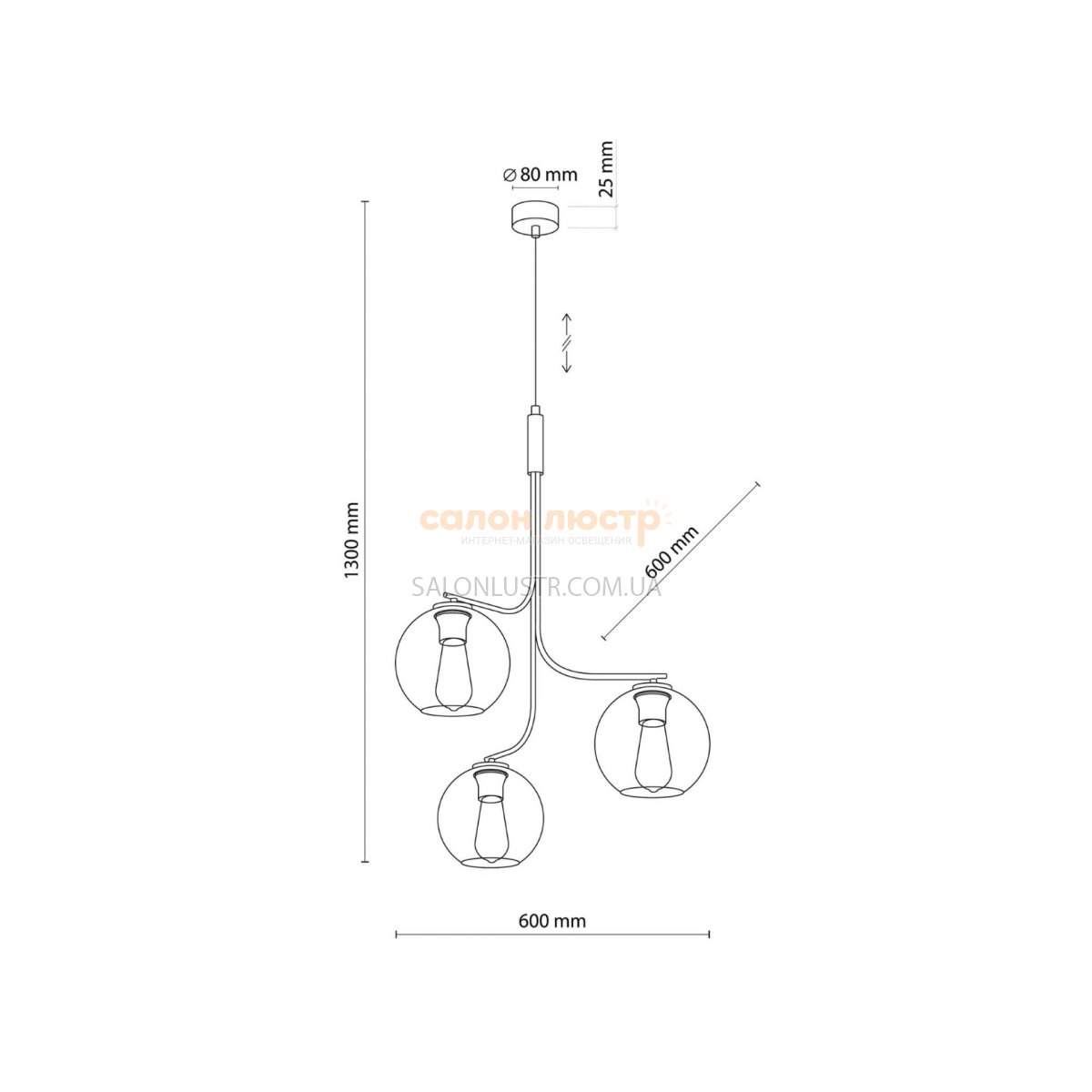 Высота: 80-130 см; ширина: 60 см; лампы: 3 х E27 х LED 15 Вт.