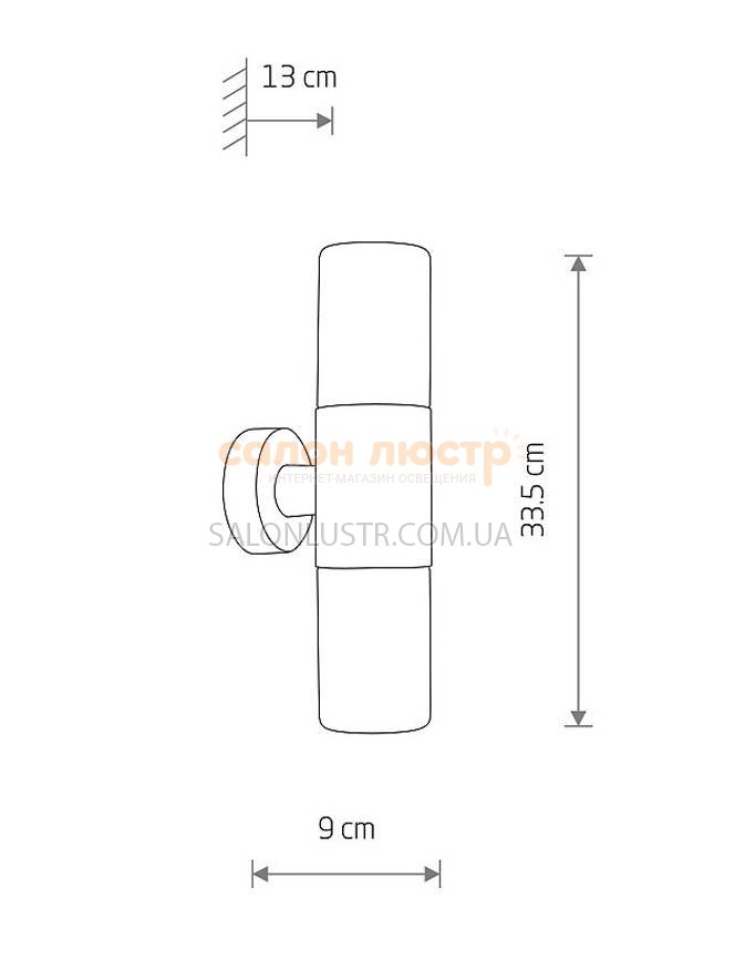 Высота: 21 см; ширина: 9 см; лампы: 1 х E27 х 60 Вт.