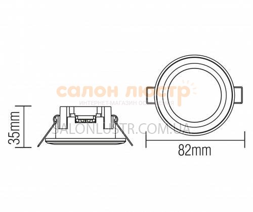 Высота: 35 мм; диаметр: 82 мм; лампы: LED х 5 Вт.