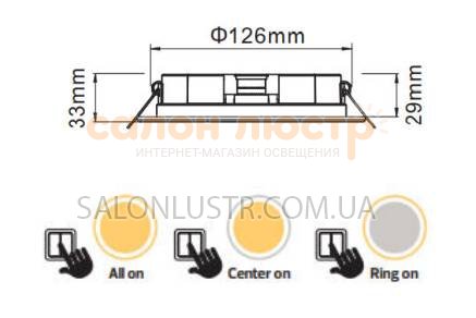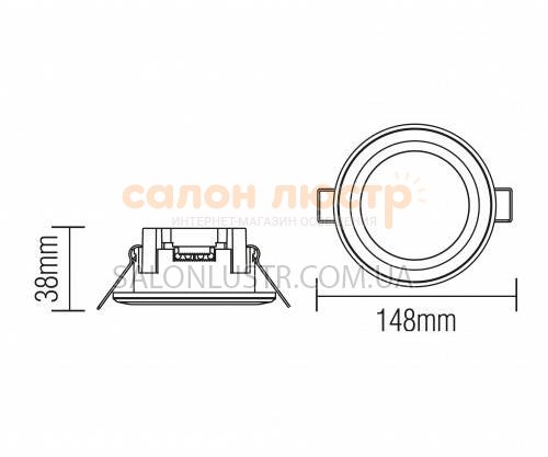 Высота: 38 мм; диаметр: 148 мм; лампы: LED х 12 Вт.