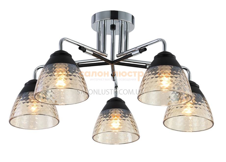 Высота: 27 см; ширина: 58 см; лампы: 5 х Е-27 х 60 Вт.