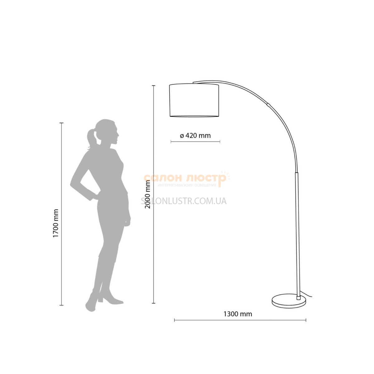 Высота: 200 см; ширина: 50х130 см; лампы: 1 х Е27 х 60 Вт.