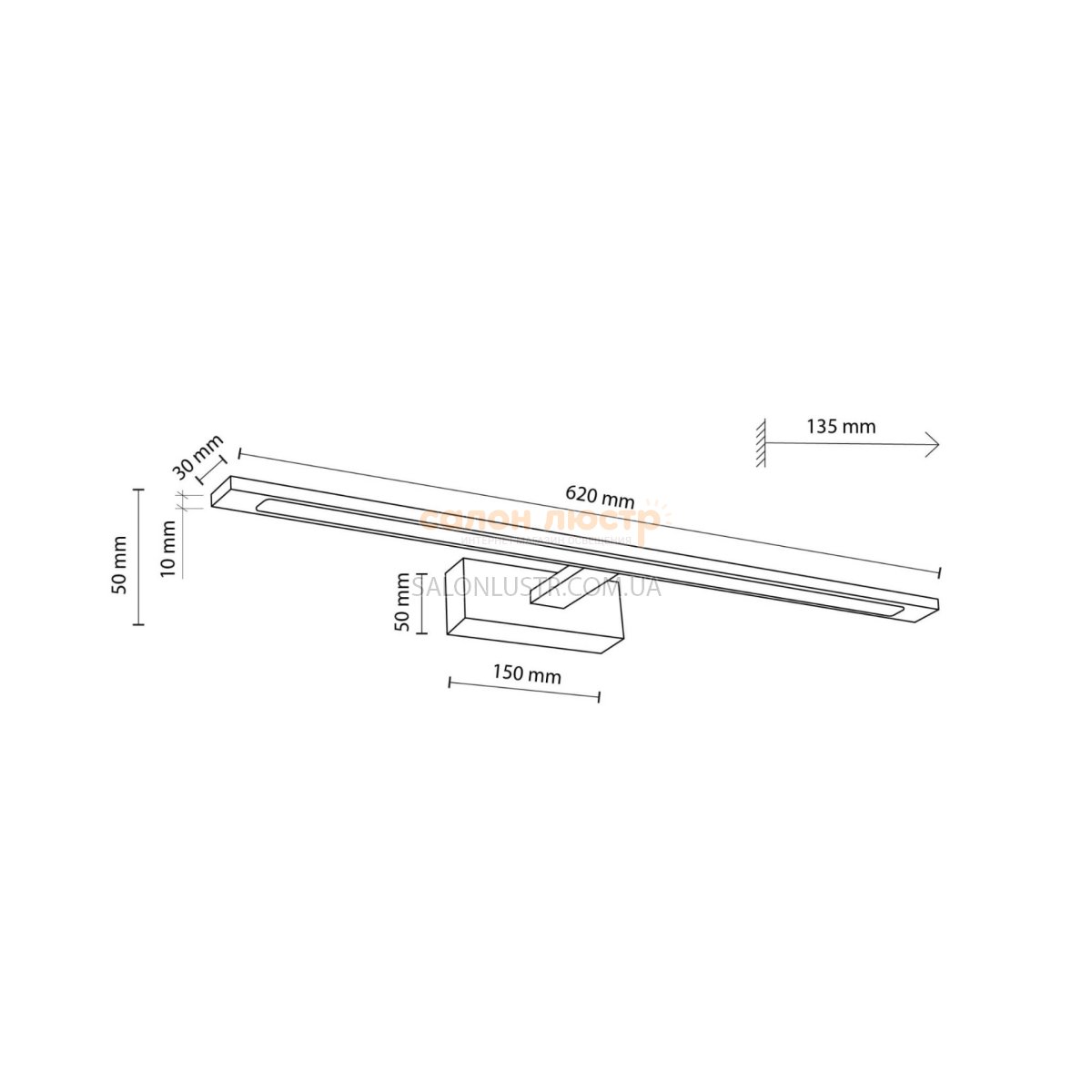 Высота: 5 см; ширина: 62 см; отступ: 13,5 см; лампа: LED х 20 Вт.