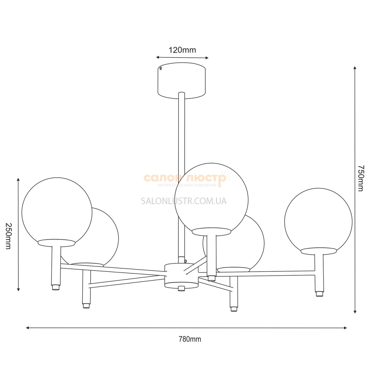 Высота: 75 см; диаметр: 78 см; лампа: 6 х Е-27 х 15 Вт LED.