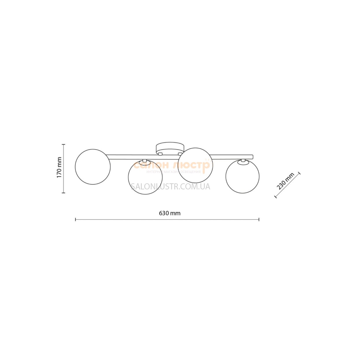 Высота: 17 см; ширина: 63х23 см; лампы: 4 х G9 х LED 6 Вт.